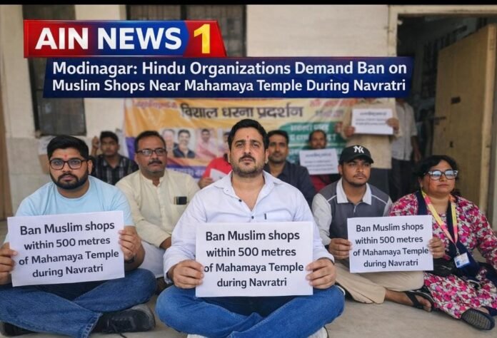 Several Hindu organizations staged a protest in Modinagar demanding administrative action ahead of the Navratri festival at the historic Mahamaya Temple Sikri. The groups submitted a memorandum to the Modinagar SDM seeking restrictions on shops within a 500-meter radius of the temple, better security arrangements, and proper identification of vendors during the Navratri fair. The protest, led by Sudarshan Rashtra Nirman and supported by multiple Hindu groups, highlights the growing debate around religious events, temple area management, and festival security arrangements in Uttar Pradesh.