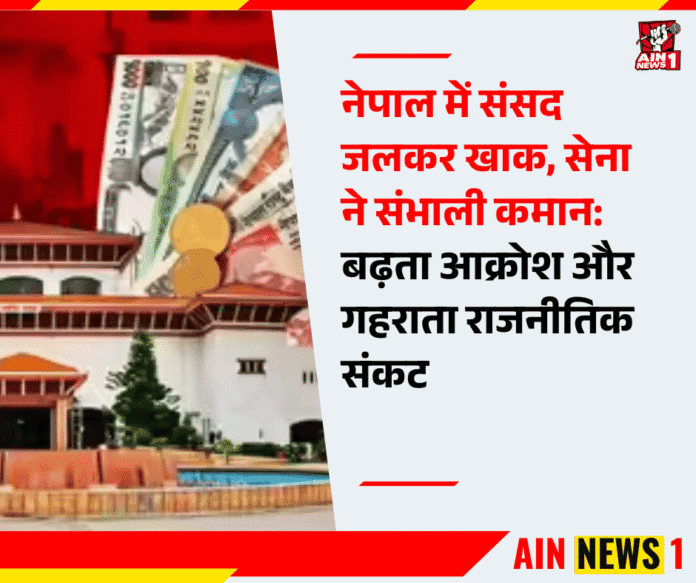 AIN NEWS 1 | नेपाल इस समय गंभीर राजनीतिक और सामाजिक उथल-पुथल से गुजर रहा है। पिछले कुछ दिनों से चल रहे विरोध-प्रदर्शन अचानक हिंसक हो उठे। हालात इतने बिगड़ गए कि प्रदर्शनकारियों ने संसद भवन और अन्य महत्वपूर्ण सरकारी इमारतों को आग के हवाले कर दिया। पुलिस की मौजूदगी बेअसर रही और आखिरकार हालात संभालने के लिए नेपाल आर्मी को हस्तक्षेप करना पड़ा।