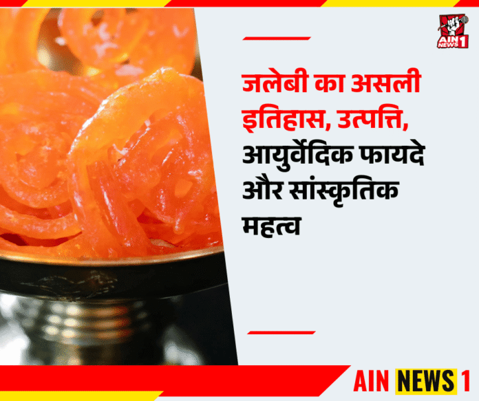 AIN NEWS 1 | भारत में जब भी मीठे पकवानों की बात होती है, तो जलेबी का नाम ज़रूर आता है। गोल-गोल कुंडलियों में लिपटी, सुनहरी-चमकीली और मीठी चाशनी में डूबी जलेबी सिर्फ एक मिठाई नहीं, बल्कि भारतीय संस्कृति, त्योहारों और खुशियों का प्रतीक है। लेकिन क्या आप जानते हैं कि इसके इतिहास को लेकर आज भी बहस होती है? कोई इसे भारत की मौलिक मिठाई मानता है, तो कोई कहता है कि इसका जन्मस्थान पश्चिम एशिया है। इस लेख में हम जलेबी की असली उत्पत्ति, भारत में इसके विकास, आयुर्वेदिक मान्यताओं और धार्मिक महत्व पर विस्तार से बात करेंगे।