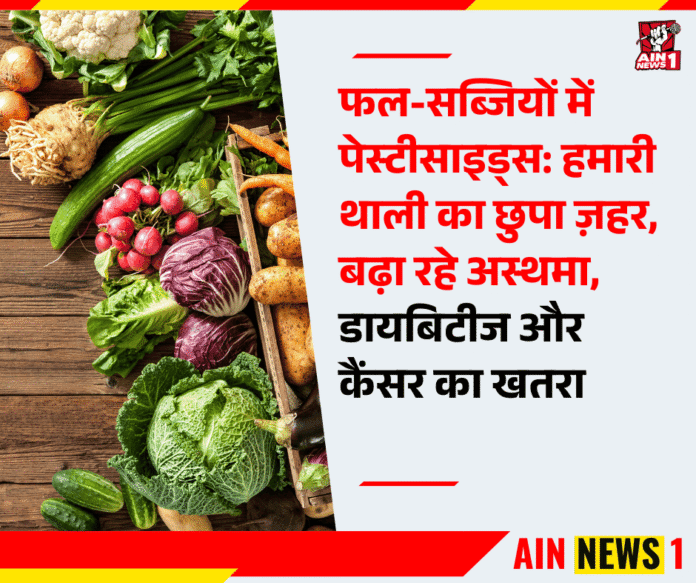 AIN NEWS 1 | जब हम बाज़ार से ताज़ी सब्ज़ियां और फल खरीदते हैं, तो हमें लगता है कि हम अपने परिवार की सेहत के लिए सही चुनाव कर रहे हैं। पर सच यह है कि इन रंग-बिरंगे और चमकदार दिखने वाले खाद्य पदार्थों में छिपा ज़हर हमारी सेहत को धीरे-धीरे खोखला कर रहा है। ताज़ा रिपोर्ट्स और लैब टेस्ट्स ने साफ कर दिया है कि पेस्टीसाइड्स यानी कीटनाशक अब हमारी थाली में सीधा जहर बनकर पहुँच रहे हैं।