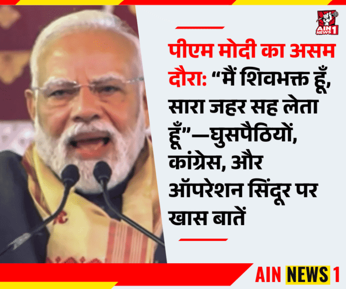 पीएम मोदी का असम दौरा: “मैं शिवभक्त हूँ, सारा जहर सह लेता हूँ”—घुसपैठियों, कांग्रेस, और ऑपरेशन सिंदूर पर खास बातें