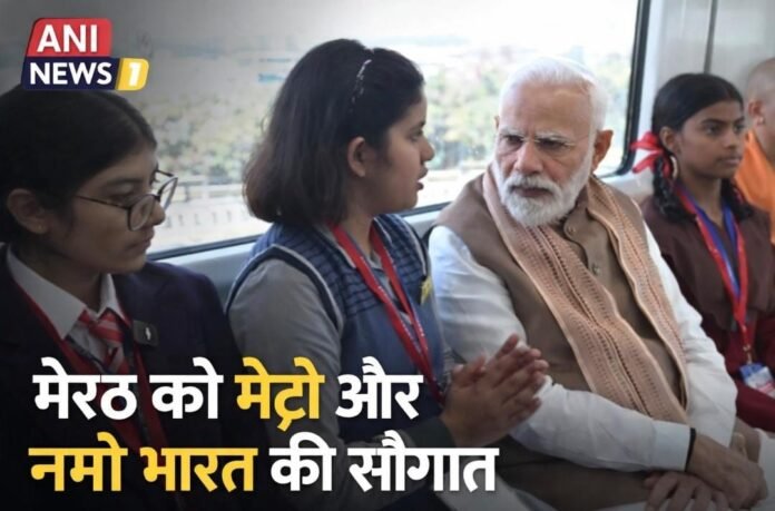 Prime Minister Narendra Modi inaugurated the Meerut Metro and Namo Bharat Train from Shatabdi Nagar Namo Bharat Station, marking a major milestone in Uttar Pradesh’s urban transport development. During his metro ride to Meerut South Station, PM Modi interacted with students and officials, highlighting the importance of modern rapid transit systems like Meerut Metro and Namo Bharat Train in reducing traffic congestion and improving connectivity across the National Capital Region.