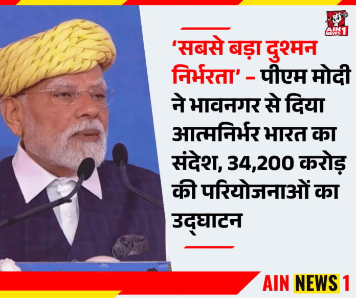 ‘सबसे बड़ा दुश्मन निर्भरता’ – पीएम मोदी ने भावनगर से दिया आत्मनिर्भर भारत का संदेश, 34,200 करोड़ की परियोजनाओं का उद्घाटन