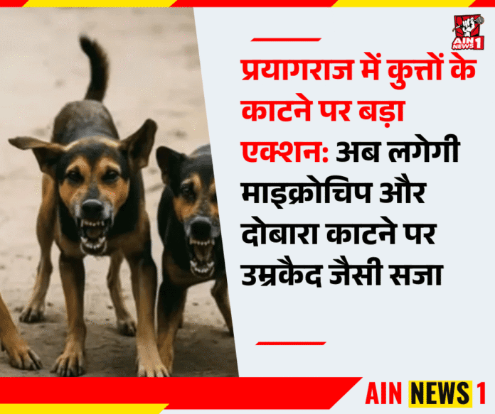 AIN NEWS 1 | प्रयागराज शहर में आवारा कुत्तों का आतंक लगातार बढ़ता जा रहा है। हर महीने चार हजार से अधिक लोग कुत्तों के काटने का शिकार हो रहे हैं। यह समस्या इतनी गंभीर हो गई है कि नगर निगम और प्रशासन ने अब सख्त कदम उठाने का फैसला किया है। पहली बार कोई कुत्ता इंसान को काटता है तो उस पर निगरानी रखी जाएगी और माइक्रोचिप लगाई जाएगी, लेकिन अगर वही कुत्ता दोबारा हमला करता है तो उसके लिए ‘उम्रकैद’ जैसी सजा तय की गई है।