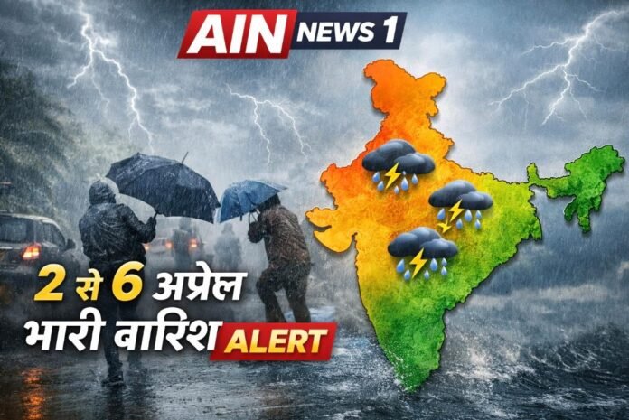भारतीय मौसम विज्ञान विभाग (IMD) के अनुसार, 2 अप्रैल से 6 अप्रैल 2026 के बीच देश के कई हिस्सों में भारी बारिश होने की संभावना है। इस दौरान सिर्फ बारिश ही नहीं, बल्कि तेज हवाएं, आंधी, बिजली गिरने और कुछ इलाकों में ओलावृष्टि जैसी स्थितियां भी देखने को मिल सकती हैं।