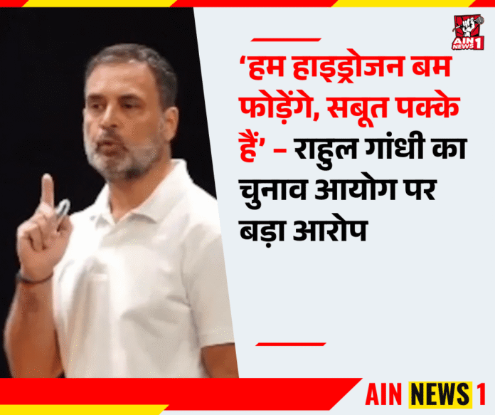 AIN NEWS 1 | कांग्रेस नेता और लोकसभा में विपक्ष के नेता राहुल गांधी ने एक बार फिर चुनाव आयोग पर गंभीर आरोप लगाए हैं। राहुल ने दावा किया कि उनके पास ऐसे सबूत हैं, जिससे यह साबित हो जाएगा कि देश में बड़े पैमाने पर ‘वोट चोरी’ हुई है।