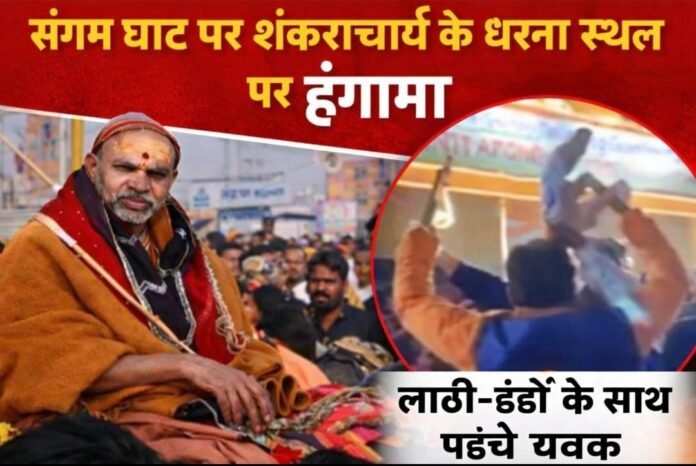 Tension escalated at Sangam Ghat in Prayagraj during the protest led by Shankaracharya Avimukteshwaranand when a group of youths carrying sticks attempted to approach the sit-in site while raising slogans. Supporters claimed timely intervention prevented a major incident. The Prayagraj Sangam Ghat protest has raised serious questions about security arrangements at sensitive religious locations, prompting calls for a thorough investigation and stricter law-and-order measures.