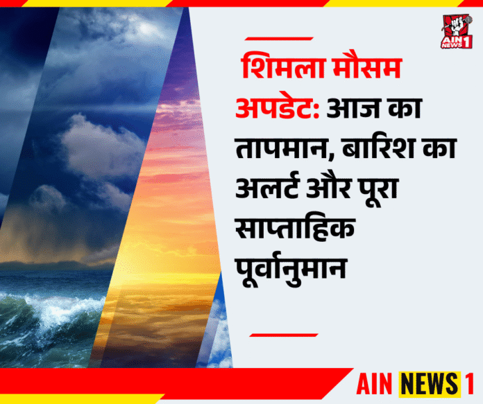 AIN NEWS 1 | हिमाचल प्रदेश की राजधानी शिमला हर मौसम में पर्यटकों को अपनी ओर आकर्षित करती है। यहां का पहाड़ी मौसम पल-पल बदलता है। सितंबर के इस समय में कभी तेज धूप तो कभी अचानक बारिश देखने को मिलती है। भारतीय मौसम विभाग (IMD) ने आज शिमला और आसपास के इलाकों के लिए बारिश और गरज-चमक का अलर्ट जारी किया है। इस रिपोर्ट में हम आपको बताएंगे आज का तापमान, बारिश की संभावना, आने वाले सात दिनों का पूर्वानुमान और यात्रियों के लिए जरूरी सावधानियां।