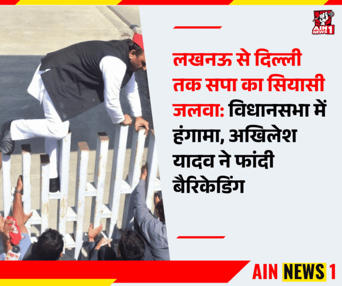 AIN NEWS 1 | सोमवार, 11 अगस्त 2025 का दिन समाजवादी पार्टी (सपा) और उसके अध्यक्ष अखिलेश यादव के लिए सियासी मायनों में बेहद अहम और चर्चित रहा। सुबह की शुरुआत लखनऊ में विधानमंडल के मानसून सत्र से हुई, जहां सपा विधायकों ने इतना जोरदार हंगामा किया कि विधानसभा को बार-बार स्थगित करना पड़ा। वहीं, दिन का दूसरा बड़ा सियासी शो दिल्ली में देखने को मिला, जब अखिलेश यादव ने पुलिस की बैरिकेडिंग फांदकर पूरे विपक्षी प्रदर्शन में अपनी अलग पहचान बना ली।