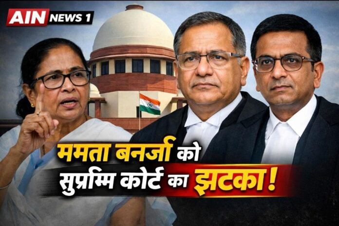 AIN NEWS 1: देश के कई राज्यों में SIR (स्पेशल इन्वेस्टिगेशन रिपोर्ट) को लेकर चल रही बहस और विवाद के बीच सुप्रीम कोर्ट ने एक अहम फैसला सुनाया है। इस मामले में पश्चिम बंगाल की मुख्यमंत्री ममता बनर्जी की ओर से दखल देने की कोशिश की गई थी, लेकिन अदालत ने साफ शब्दों में उनकी अपील को स्वीकार करने से इनकार कर दिया। अदालत के इस रुख को ममता बनर्जी के लिए एक बड़ा झटका माना जा रहा है।