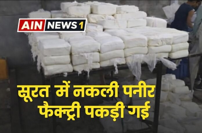 AIN NEWS 1: गुजरात के सूरत शहर से एक चौंकाने वाला मामला सामने आया है, जिसने लोगों के खाने-पीने की सुरक्षा को लेकर गंभीर सवाल खड़े कर दिए हैं। यहां एक ऐसी फैक्ट्री का भंडाफोड़ हुआ है, जहां बिना दूध की एक बूंद इस्तेमाल किए ‘पनीर’ तैयार किया जा रहा था। यह नकली पनीर पिछले करीब दो साल से बाजार में सप्लाई किया जा रहा था।