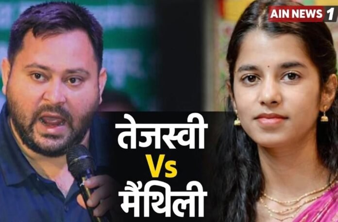 AIN NEWS 1: बिहार की राजनीति में एक बार फिर बयानबाज़ी का दौर तेज हो गया है। शुक्रवार को विधानसभा में दिए गए एक बयान को लेकर राज्य के नेता प्रतिपक्ष और राष्ट्रीय जनता दल (आरजेडी) के कार्यकारी अध्यक्ष तेजस्वी यादव ने भारतीय जनता पार्टी (भाजपा) की विधायक मैथिली ठाकुर पर तीखा हमला बोला है। हालांकि उन्होंने अपने बयान में विधायक का नाम सीधे तौर पर नहीं लिया, लेकिन सोशल मीडिया पर साझा की गई तस्वीर और लिखे गए शब्दों से उनका इशारा स्पष्ट माना जा रहा है।