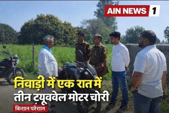 AIN NEWS 1: गाजियाबाद जिले के ग्रामीण क्षेत्र में एक बार फिर चोरों ने किसानों की नींद उड़ा दी है। गाजियाबाद के निवाड़ी थाना क्षेत्र में 2 मार्च की रात ऐसी वारदात हुई, जिसने किसानों को गहरे संकट में डाल दिया। एक ही रात में तीन अलग-अलग खेतों से ट्यूबवेल मोटर चोरी कर ली गईं। इससे पहले भी कुछ दिनों में कई मोटरों और ट्रांसफॉर्मरों पर हाथ साफ किए जाने की घटनाएं सामने आ चुकी हैं। लगातार हो रही चोरियों से किसान खुद को असुरक्षित और ठगा हुआ महसूस कर रहे हैं।