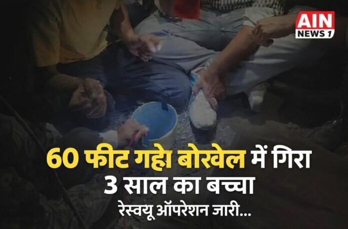 AIN NEWS 1: मध्यप्रदेश के उज्जैन जिले से एक बेहद दर्दनाक और चिंता बढ़ाने वाली घटना सामने आई है, जिसने पूरे इलाके को झकझोर कर रख दिया है। यहां एक 3 साल का मासूम खेलते-खेलते अचानक एक खुले बोरवेल में गिर गया। बताया जा रहा है कि बच्चा करीब 60 फीट की गहराई में फंसा हुआ है, जिसे सुरक्षित बाहर निकालने के लिए प्रशासन, पुलिस और रेस्क्यू टीमों द्वारा लगातार प्रयास किए जा रहे हैं।