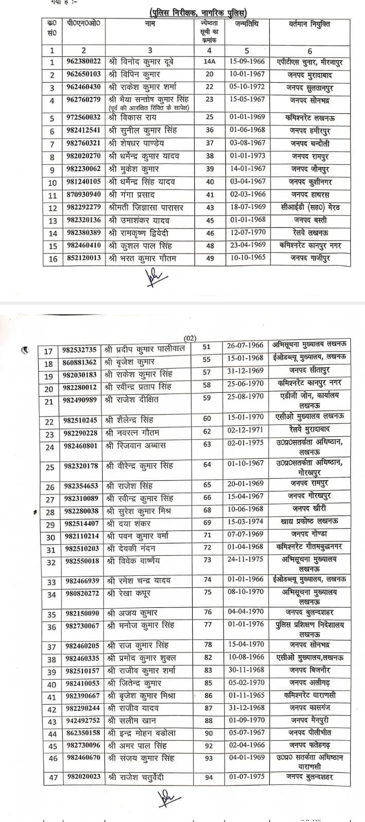 इस सूची में कई वरिष्ठ निरीक्षकों के नाम शामिल हैं जिन्हें विभिन्न जिलों में भेजा गया है। उदाहरण के तौर पर –