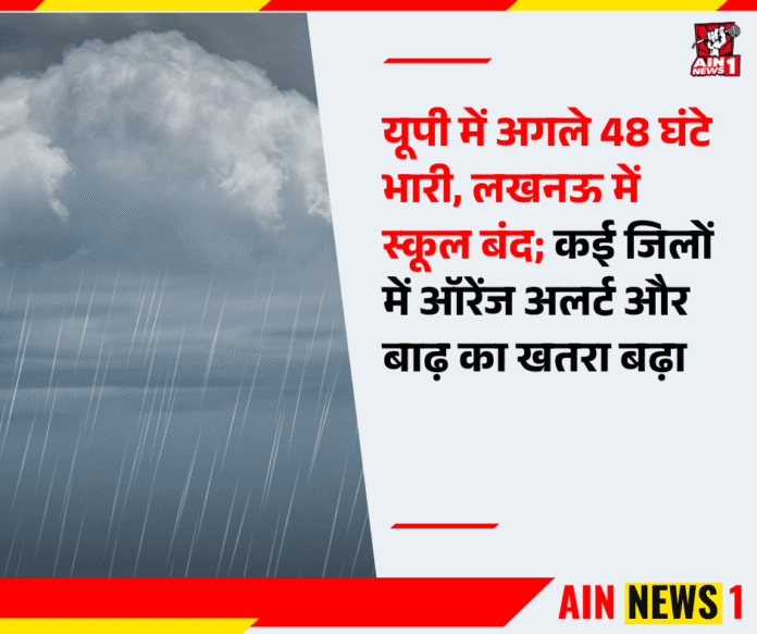 यूपी में अगले 48 घंटे भारी, लखनऊ में स्कूल बंद; कई जिलों में ऑरेंज अलर्ट और बाढ़ का खतरा बढ़ा
