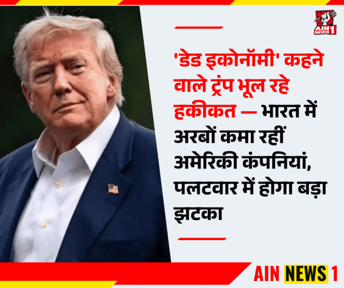 AIN NEWS 1 | अमेरिकी राष्ट्रपति डोनाल्ड ट्रंप हाल ही में भारत पर लगातार बयानबाज़ी कर रहे हैं। कभी वे भारत को ‘टैरिफ किंग’ कहते हैं, तो कभी यहां की अर्थव्यवस्था को ‘डेड इकोनॉमी’ करार देते हैं। इतना ही नहीं, उन्होंने भारतीय सामानों के आयात पर 50% तक का टैरिफ भी लगा दिया है। लेकिन तस्वीर का दूसरा पहलू यह है कि भारत में सैकड़ों अमेरिकी कंपनियां अरबों डॉलर का कारोबार कर रही हैं और मुनाफा कमा रही हैं। ऐसे में अगर भारत ने पलटवार किया, तो अमेरिका के लिए नुकसान भारी पड़ सकता है।