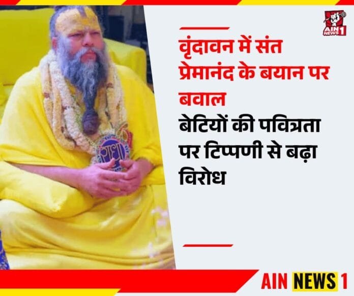 AIN NEWS 1: वृंदावन, जिसे धार्मिक और आध्यात्मिक दृष्टि से एक पवित्र स्थान माना जाता है, इन दिनों लगातार विवादों में घिरता जा रहा है। हाल ही में संत अनिरुद्धाचार्य के बयान ने देशभर में आक्रोश फैला दिया था। उनके बयान को महिलाओं के प्रति अपमानजनक और असंवेदनशील माना गया, जिस पर राष्ट्रीय महिला आयोग ने स्वतः संज्ञान लेकर जांच की थी। इस विवाद की आग अभी शांत भी नहीं हुई थी कि एक और संत – प्रेमानंद महाराज – के बयान ने सोशल मीडिया पर तूफान खड़ा कर दिया है।